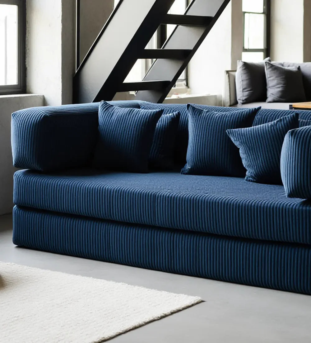 A espuma do The Growing Sofa, com tecnologia exclusiva GrowTech, tem densidade ideal de 35D, para um equilíbrio perfeito entre conforto e suporte. A sua fórmula avançada garante contracção e expansão sem deformação. Embalado a vácuo na nossa caixa padrão, assegura conveniência e qualidade.