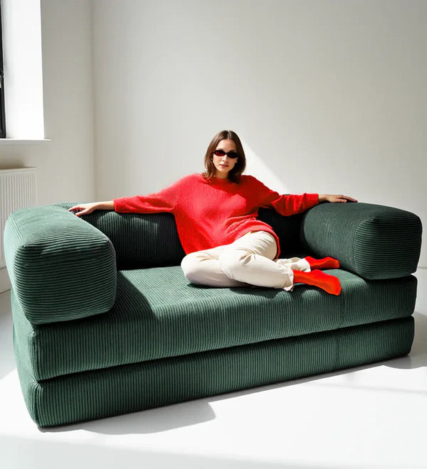 A espuma do The Growing Sofa, com tecnologia exclusiva GrowTech, tem densidade ideal de 35D, para um equilíbrio perfeito entre conforto e suporte. A sua fórmula avançada garante contracção e expansão sem deformação. Embalado a vácuo na nossa caixa padrão, assegura conveniência e qualidade.